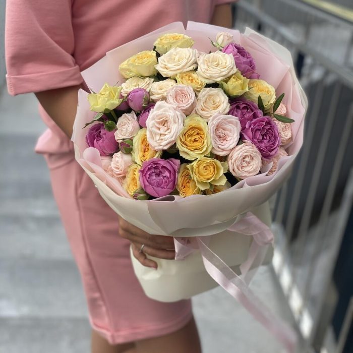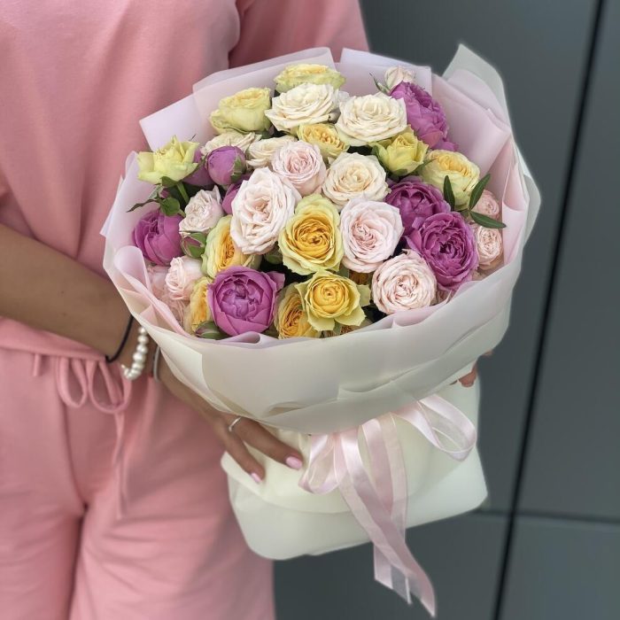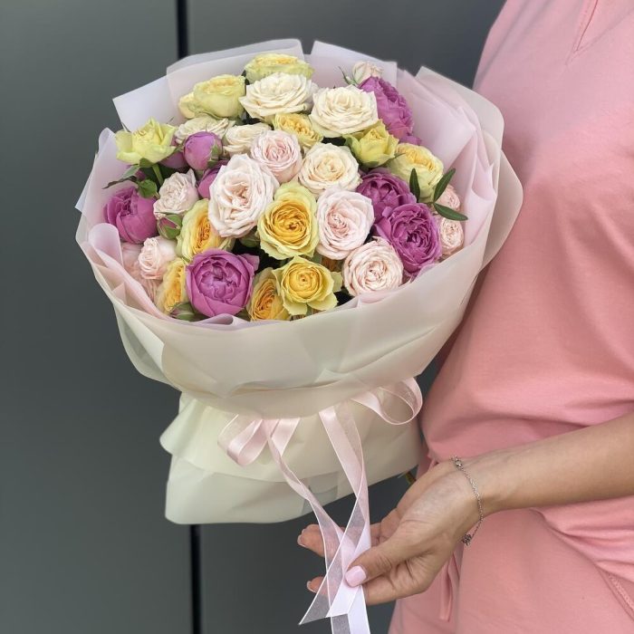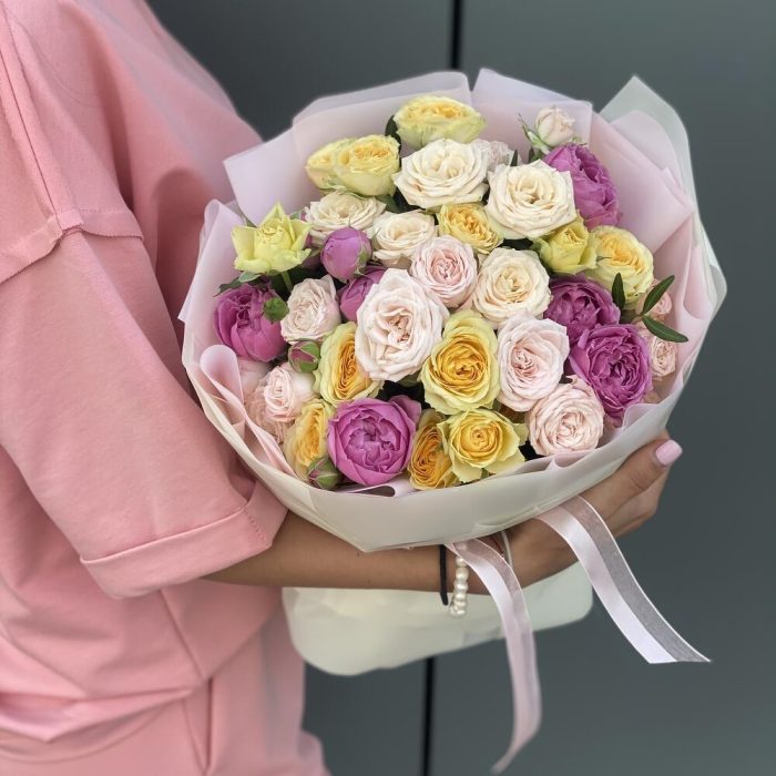 Сборный букет из микса кустовых роз в оформлении!